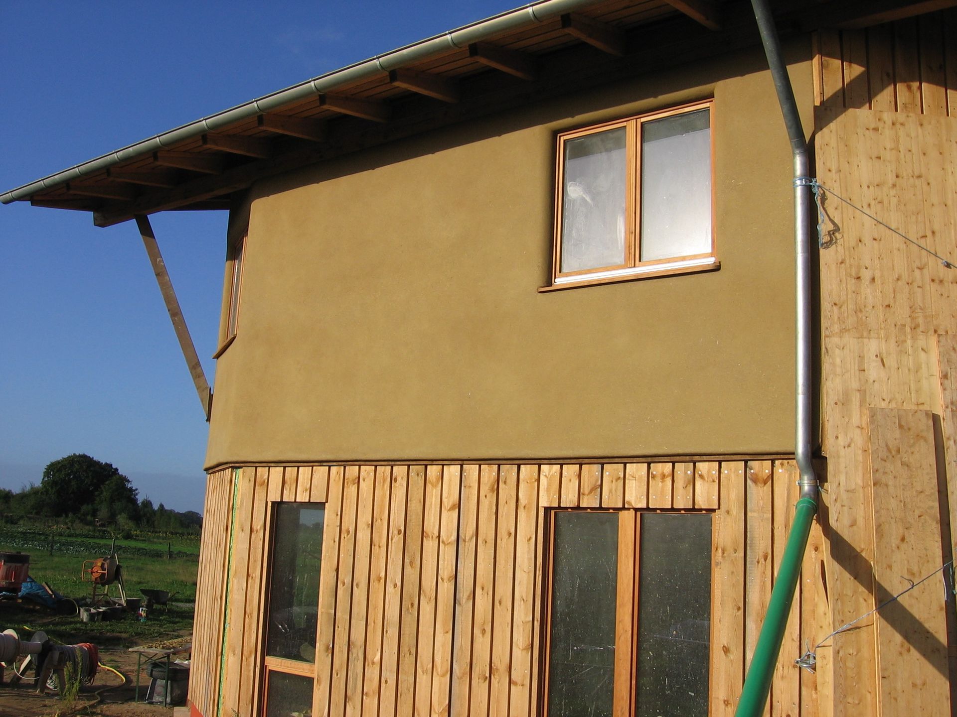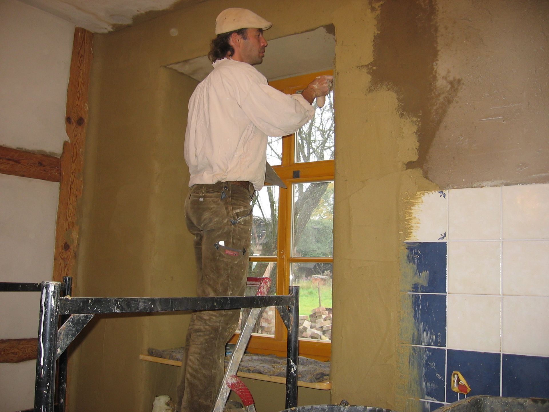 Seitdem meine Hände zum ersten Mal in diesem wundervollen Baustoff eintauchten, ließ mich die Faszination von Lehm nicht mehr los. Bei seiner Verarbeitung können wir uns mit ganz archaischen Techniken des Hausbauens verbinden und sein jahrtausendealte Anwendung stets auf's Neue entdecken. Da Lehm in unterschiedlicher Zusammensetzung fast überall auf dieser Erde verfügbar ist, eignet er sich wunderbar um direkt vor Ort gewonnen und weiterverarbeitet zu werden. Moderne Zwangsmischer erleichtern uns heute das mühsame Aufbereiten des Lehms. Die Qualitäten eines Lehmverputzes entfalten sich vor allem dann, wenn er von Hand oder mit Kelle angeworfen und weiterverarbeitet wird. Bauen mit Lehm ist Hand...Werk